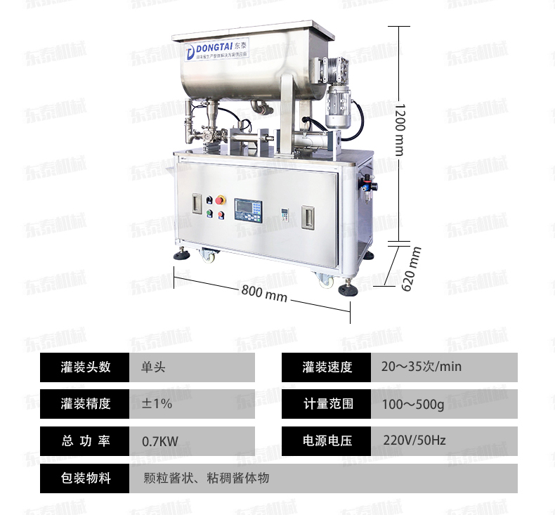 本單頭醬料灌裝機可自動完成計量、灌裝等全過程,操作方便,該機為半自動灌裝機械,配置的自動攪拌器,保證了醬和油的充分混合,可灌裝顆粒漿狀流體物料在對辣椒醬、拌面醬、豆鼓等醬類進行灌裝時,灌裝量可在規定范圍內任意調節,計量誤差小,該半自動醬類灌裝機采用壓縮空氣為動力可在各種環境中使用。