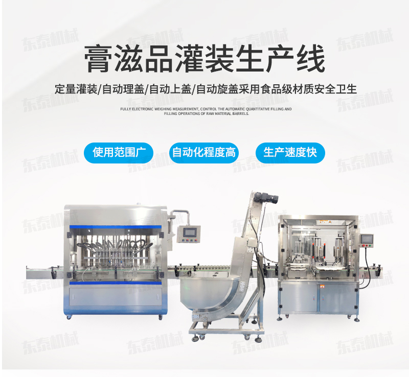 枇杷膏灌裝機生產(chǎn)線適用于各種1、各種膏滋如:秋梨膏、枇杷膏、鹿鞭膏、蜂蜜等的灌裝。2、調(diào)味醬如:香菇醬、辣椒醬、豆瓣醬、花生醬、芝麻醬、牛油火鍋底料、紅油火鍋底料。3、采用多規(guī)格的灌裝轉閥、灌裝頭,可適應不同客戶物料的灌裝需求。